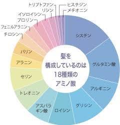 髪の毛の主成分は18種類のアミノ酸で構成されるケラチン繊維と言うタンパク質からできています。